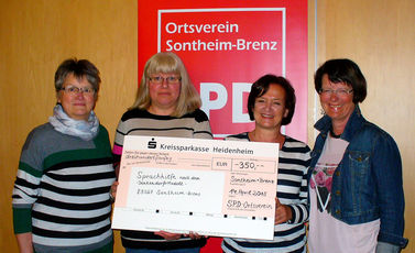 Der Verkauf von Kaffee, Kuchen und gebrauchten Büchern lief gut, und somit konnte der SPD-Ortsverein die Sontheimer Sprachförderung mit einem Scheck über 350 Euro unterstützen. Dank noch an die Gemeinde, die uns den Marktstand kostenlos überlassen hat.
