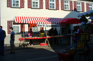 Der Verkauf von Kaffee, Kuchen und gebrauchten Büchern lief gut, und somit konnte der SPD-Ortsverein die Sontheimer Sprachförderung mit einem Scheck über 350 Euro unterstützen. Dank noch an die Gemeinde, die uns den Marktstand kostenlos überlassen hat.